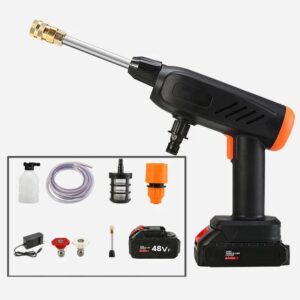مسدس ضغط مياه لاسلكى قابل لإعادة الشحن – متعدد الاستخدامات لغسيل السيارات والدراجات و النوافذ ..ضغط عالى 400 واط /48 فولت مع حقيبة للحمل والتخزين