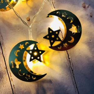 يتميز التصميم بشكل نجوم وقمر بالجاذبية والأناقة، مما يضفي لمسة فريدة على الديكور في المنزل أو في المناسبات الخاصة.